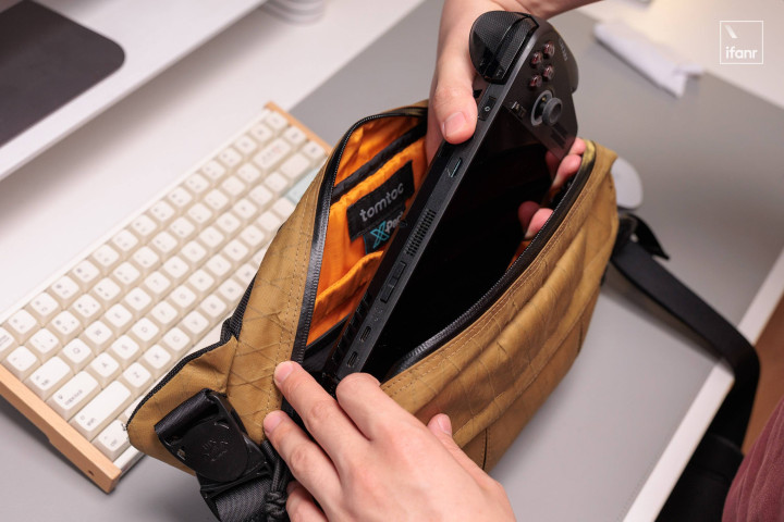ROG XBOX 掌机 X 的屏幕只有 7 英寸,很好控制了机身大小。尽管手柄握把硕大,实际长度却几乎跟 Switch 2 一致,只是厚度略宽。换言之,如果你的随身包能放下 Switch 2,那么稍微腾挪一下,大概率也能把 ROG XBOX 掌机 X 塞进去。