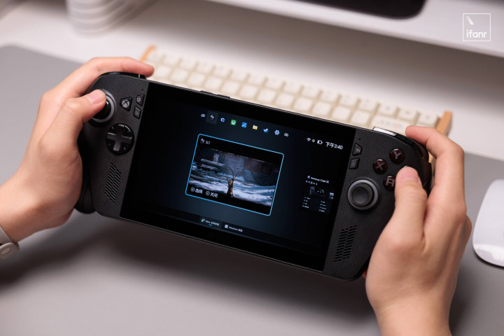 得益于良好的配重设计,这台掌机拿在手里并不会觉得沉,反倒是由于掌心有了良好的支撑,即便是玩一些高强度的动作游戏也不容易觉得酸,这点比 Switch 2 要强得多,相信这也是未来所有高性能掌机——譬如传闻中的索尼 PS6 掌机,会考虑的路线。